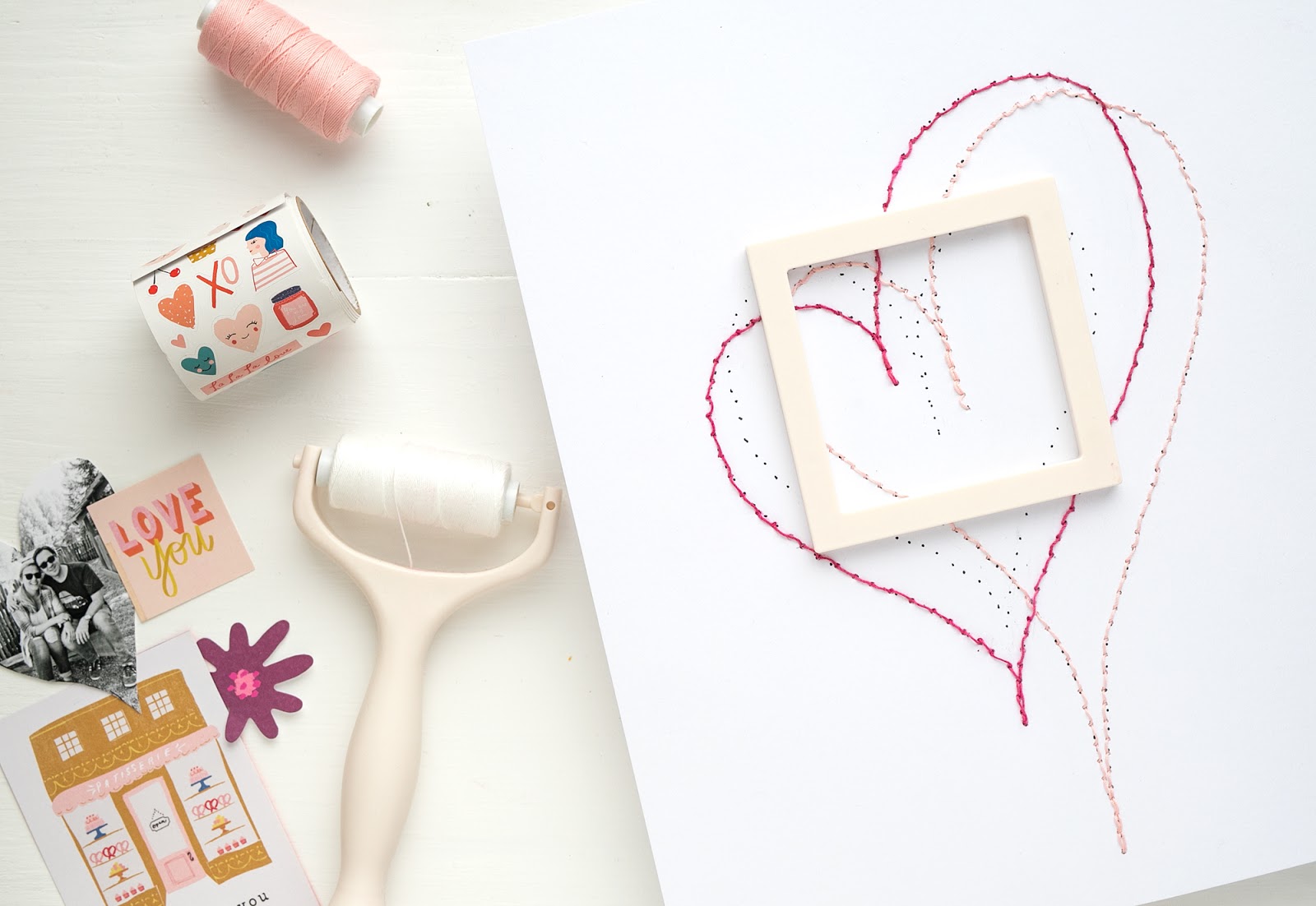 Feiert Ihr den Valentinstag? Wir feiern das ja ehrlich gesagt eher weniger. Aber ich habe mich an einem "herzigen" Layout versucht. Hierzu habe ich mit meinem momentan absolutem Lieblingstool, dem "Stitch Happy Pen" von We R Memory Keepers (Werbung) große Herzen gestickt.