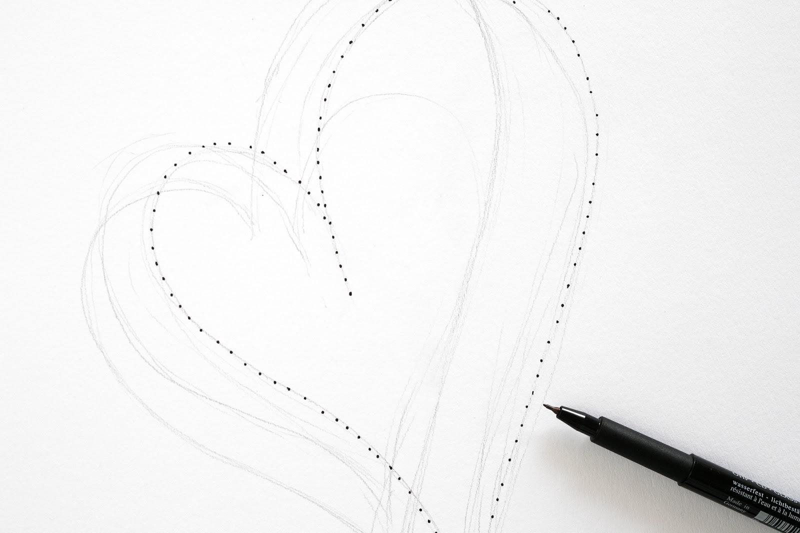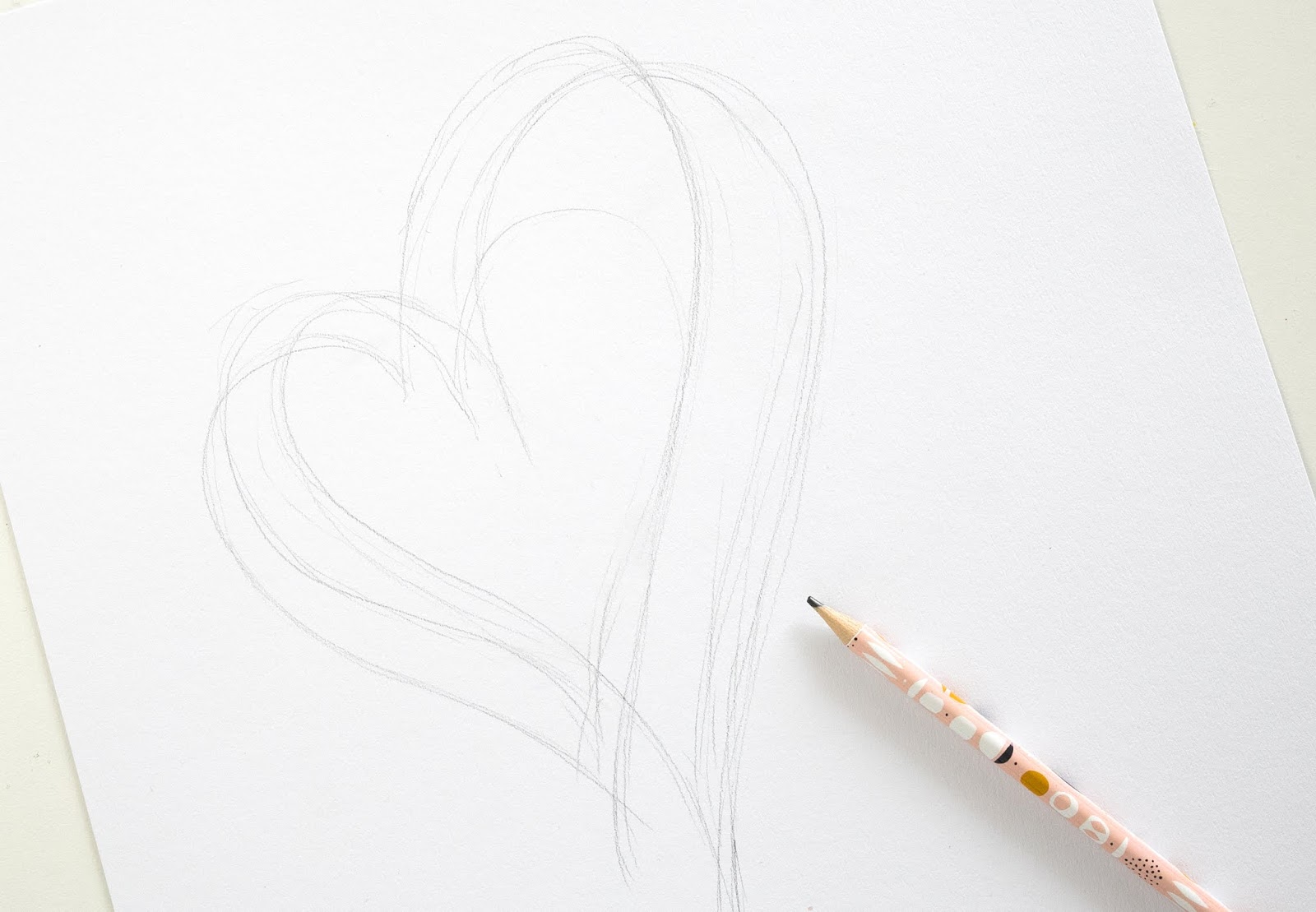 Zuerst habe ich auf einem 9x12 inch großem Cardstock mit einem Bleistift die Herzen skizziert. Ich wollte gerne 3 Herzen ineinander malen.