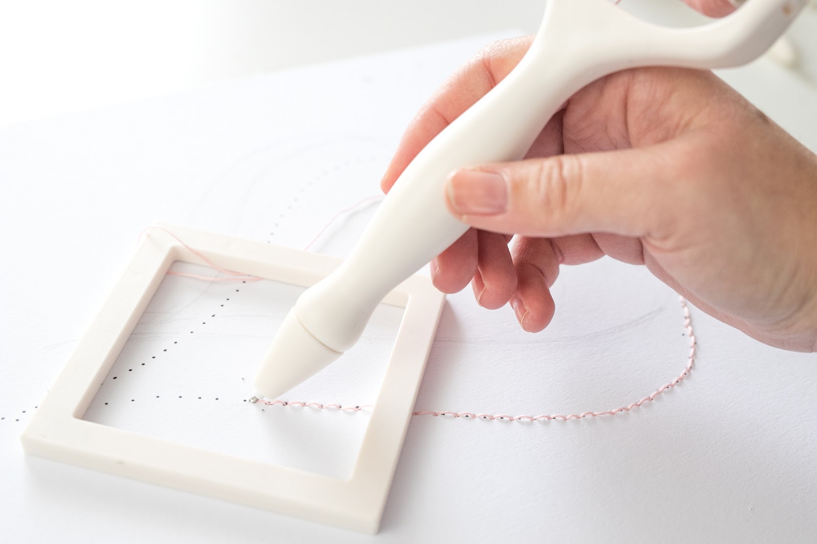 Hierzu habe ich die einzelnen Schritte fotografiert und dokumentiert. Falls Ihr auch mal Lust habt, mit dem Stitch Happy Pen eigene Motive zu sticken.