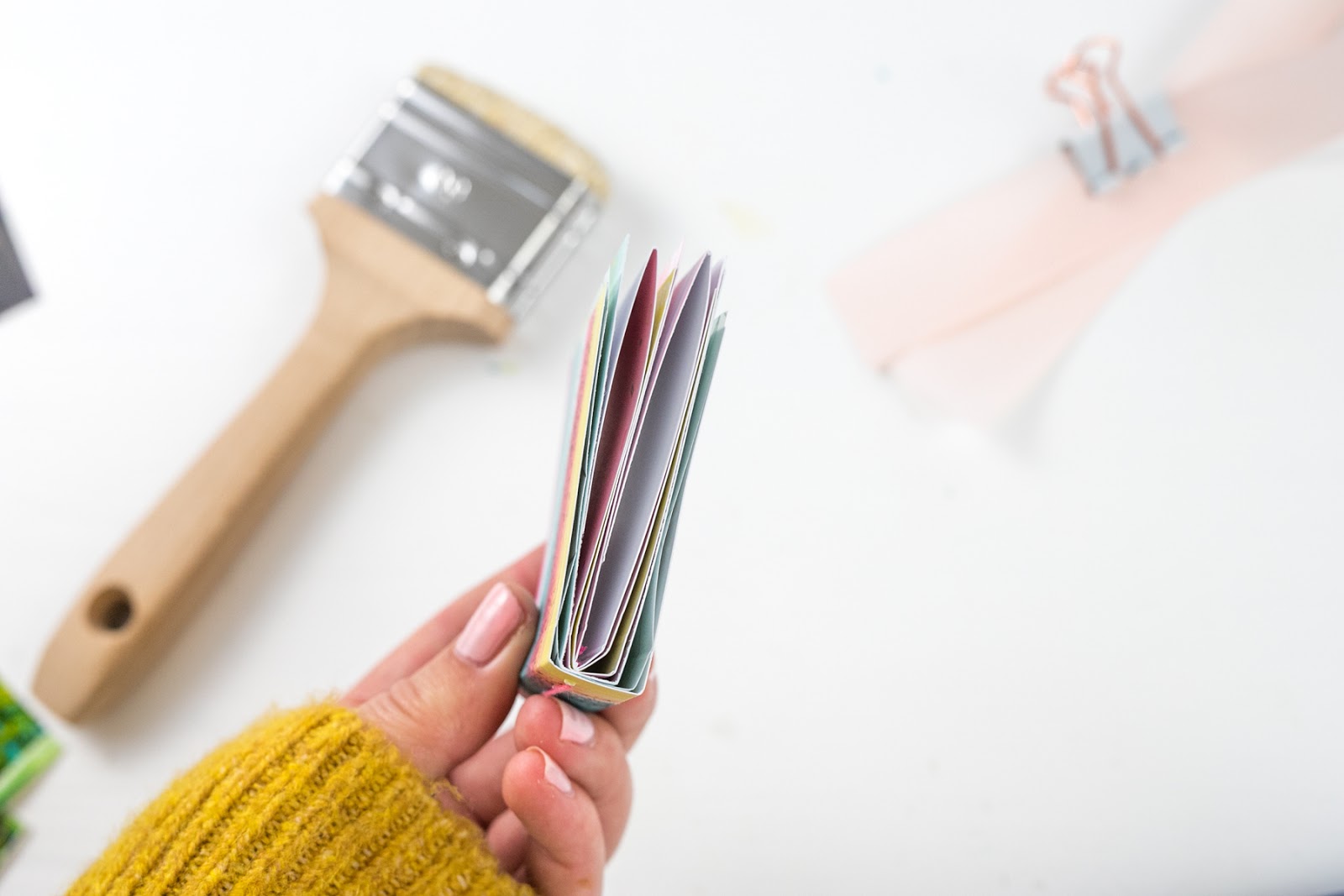 Damit das Mini mehr nach einem Pinsel aussieht, habe ich ein paar Seiten kleine Fransen mit der Schere geschnitten. Einfach oben ein Stück einschneiden.